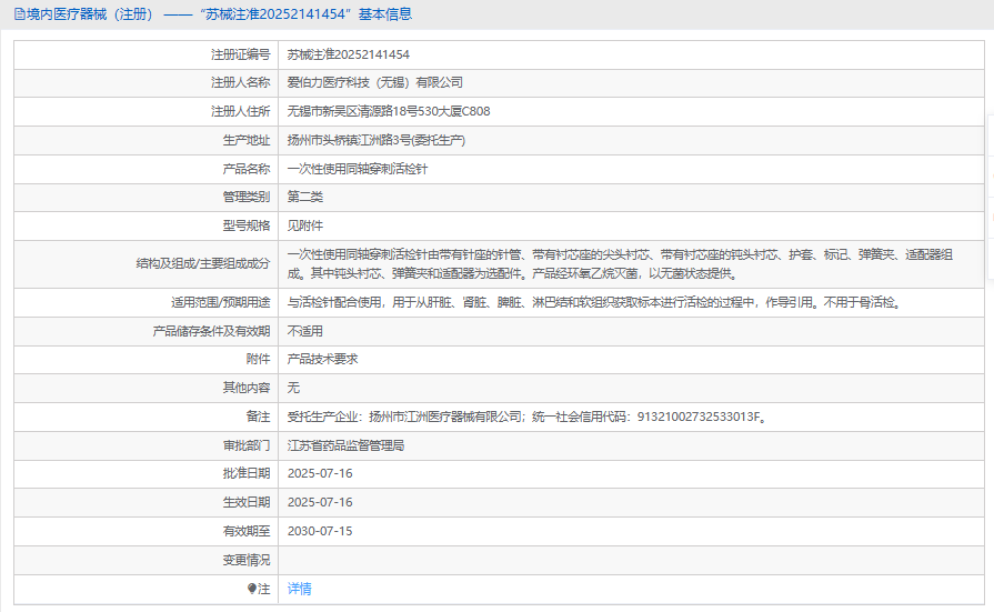 一次性使用同轴穿刺活检针爱伯力询价